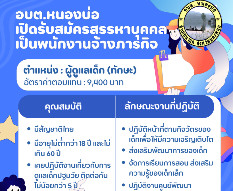 ประชาสัมพันธ์การรับสมัครบุคคลทั่วไปเพื่อสรรหาและเลือกสรรเป็นพนักงานจ้างขององค์การบริหารส่วนตำบลหนองบ่อ พ.ศ. 2568 ดูรายละเอียด..