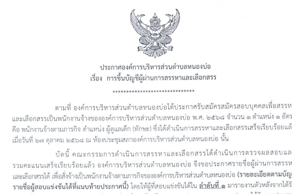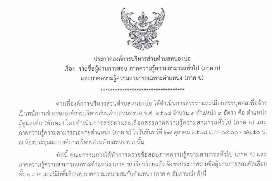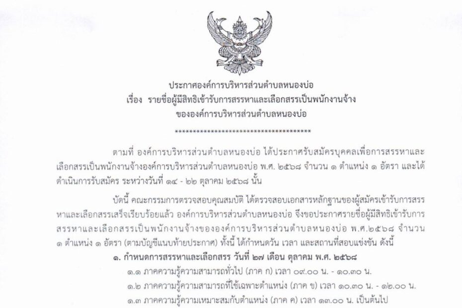 ประกาศรายชื่อผู้มีสิทธิเข้ารับการสรรหาและเลือกสรรเป็นพนักงานจ้างขององค์การบริหารส่วนตำบลหนองบ่อ subpart_nobggor2