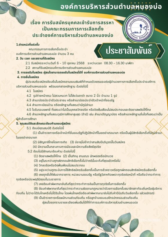ประชาสัมพันธ์ เรื่อง การรับสมัครบุคคลเข้ารับการสรรหาเป็นคณะกรรมการการเลือกตั้ง องค์การบริหารส่วนตำบลหนองบ่อ subpart_nobggor2 Post Views: 11 Facebook iconFacebookTwitter iconTwitterLINE iconLine